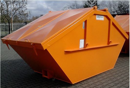 ELLERMANN Absetzkippermulde AM 5.7 D (mit Stahldeckel) Inhalt: ca. 7 m³ • Symmetrische Form mit Einfach-Kipplager an den Schüttkanten • Aufnahmebeschläge für Absetzsystem nach DIN 30720 • Boden aus 5 mm St 37-2 (S235JR) • Seiten aus 3 mm St 37-2 (S235JR) • Abdeckprofil U 100 x 50 x 4 • Alle Ecken verstärkt • Behälter von innen einmal grundiert, von außen doppelt grundiert und von außen doppelt einfarbig lackiert • UVV-Aufkleber mit Sicherheitshinweisen • Behälter geprüft und abgenommen nach UVV Folgende Farben am Lager: RAL 2011 Tieforange, RAL 5010 Enzianblau, RAL 6018 Gelbgrün und RAL 7016 Anthrazitgrau.